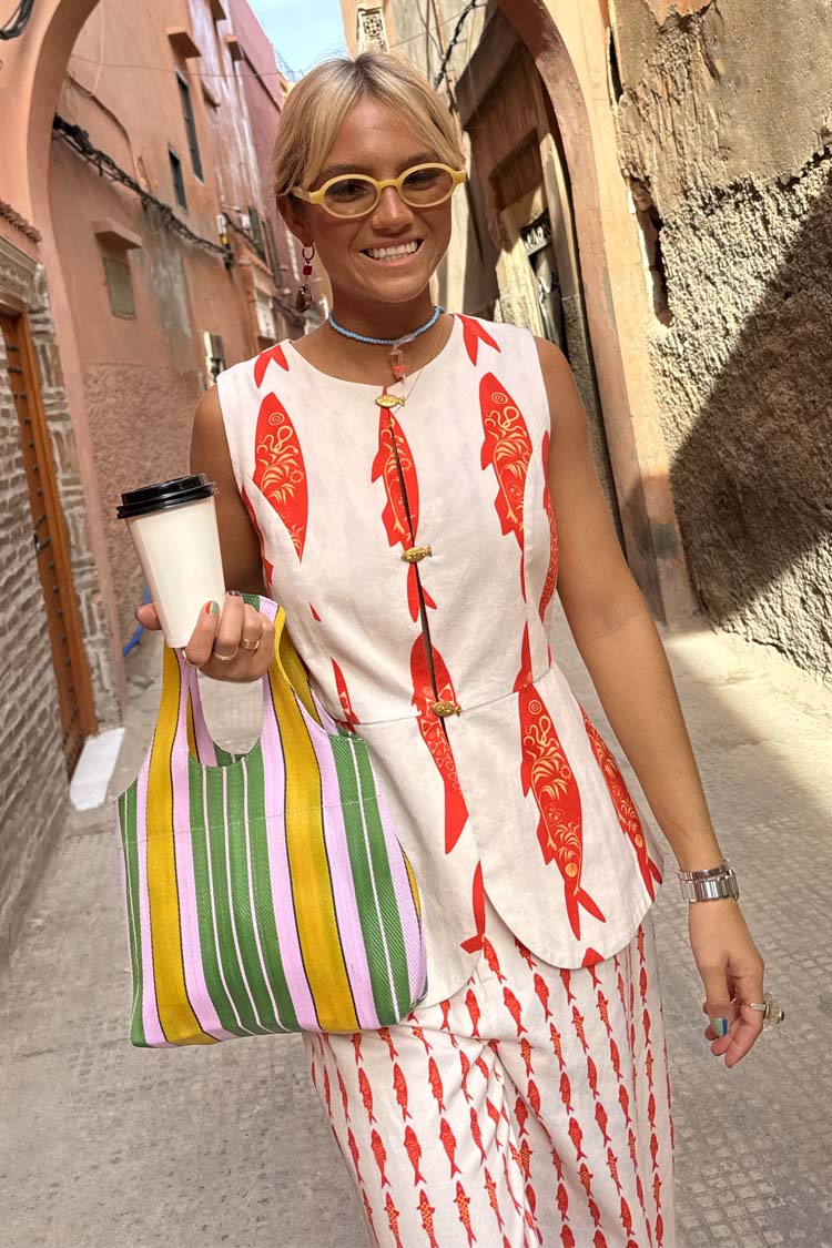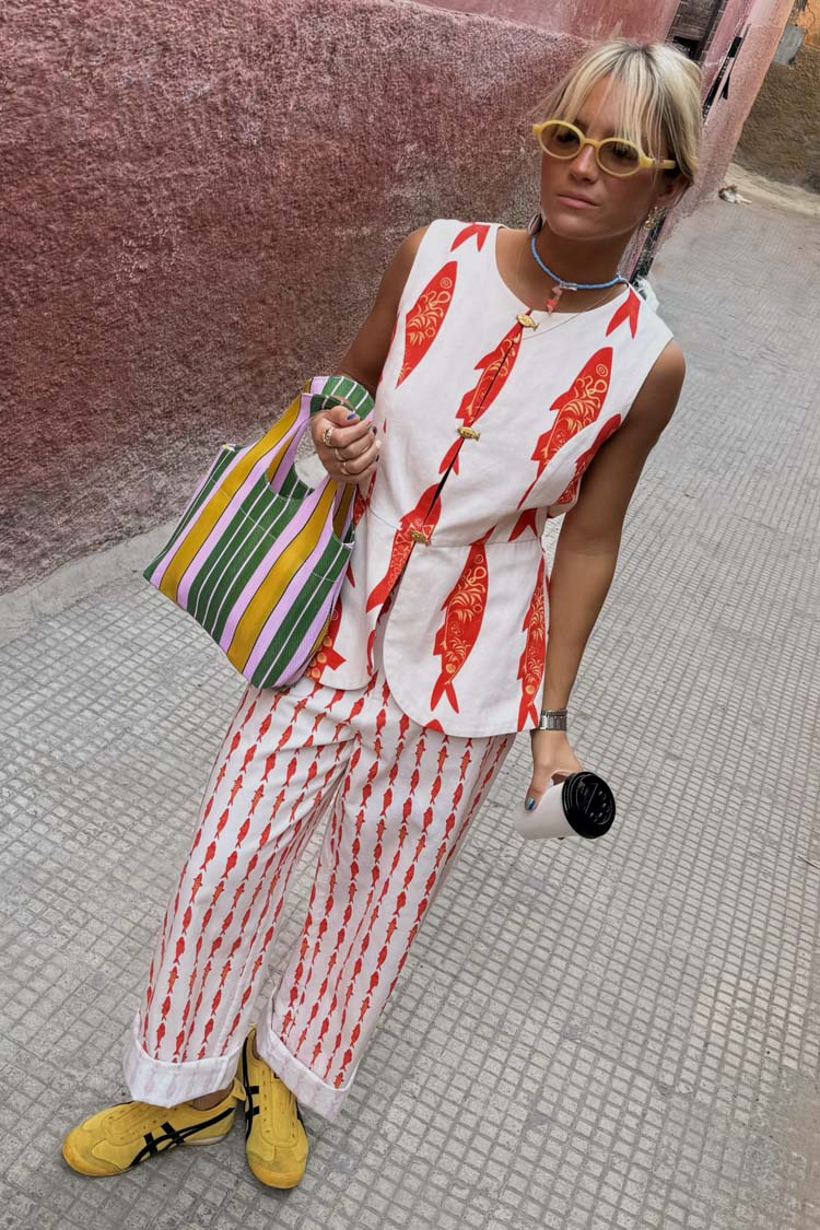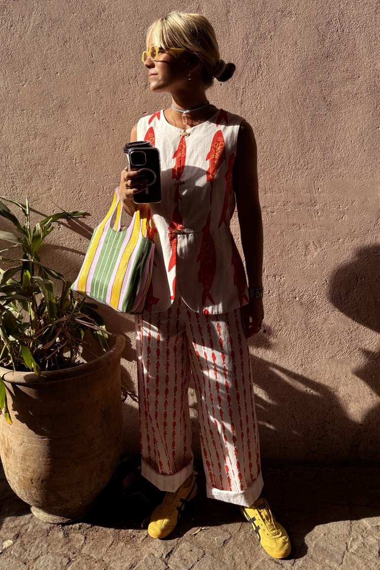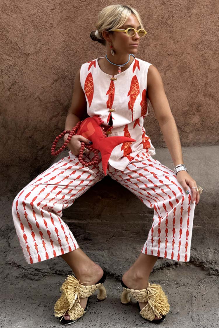 Colete de Verão com Botões de Metal e Estampa de Amuleto da Sorte – Estilo Mediterrâneo